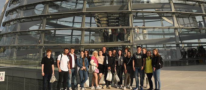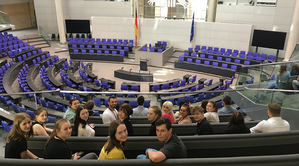 Der Wahlpflichtkurs „Demokratie stärken“ der Adenauerschule mit PoWi-Lehrer Stefan Metzler hatte in der Altersgruppe der achten bis zwölften Klassen bundesweit den ersten Platz mit einem Videoclip zum gestellten Thema „Antisemitismus – uralt und gefährlich aktuell“ belegt. Der Preis war eine fünftägige Reise nach Berlin, verbunden neben der Teilnahme an der Festveranstaltung mit einem umfangreichen Besichtigungsprogramm mit jeder Menge Unterhaltung, aber auch mit Bildung und Politik.