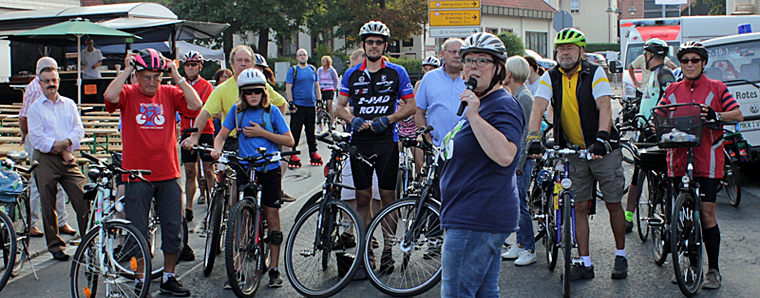Es sei zwar bedauerlich, dass der Weltrekord der längsten stehenden Fahrradkette nicht geknackt werden konnte, aber 917 Teilnehmerinnen und Teilnehmer sind auch ein gutes Ergebnis. „So etwas hat es zuvor im Main-Kinzig-Kreis noch nicht gegeben und es war in jedem Fall ein Versuch wert“, betonte sie und dankte Telekommunikationsanbieter M-net und allen Mitwirkenden für diese „mutige Idee“. Für das kommende „silberne Jubiläum“ des Radlersonntags kündigte sie gemeinsam mit Niederlassungsleiter Richard Zebisch bereits ein neues Projekt an – ohne dabei schon Einzelheiten zu verraten. Beeindruckt zeigte sich die Erste Kreisbeigeordnete von der insgesamt fröhlichen Stimmung und dem weitgehend reibungslosen Ablauf. Gegen 9:15 Uhr hatte sie bereits in Sterbfritz den Startschuss gegeben und dabei allen Helferinnen und Helfern gedankt. Zudem betonte sie angesichts der erneuten Drohungen gegen Landrat Erich Pipa den positiven Charakter des Radlersonntags. „Nicht nur heute stehen für uns Gemeinsamkeit, Solidarität und Freude im Mittelpunkt, so dass solche ausländerfeindlichen und menschenverachtenden Tendenzen keine Chance haben“, machte sie deutlich.