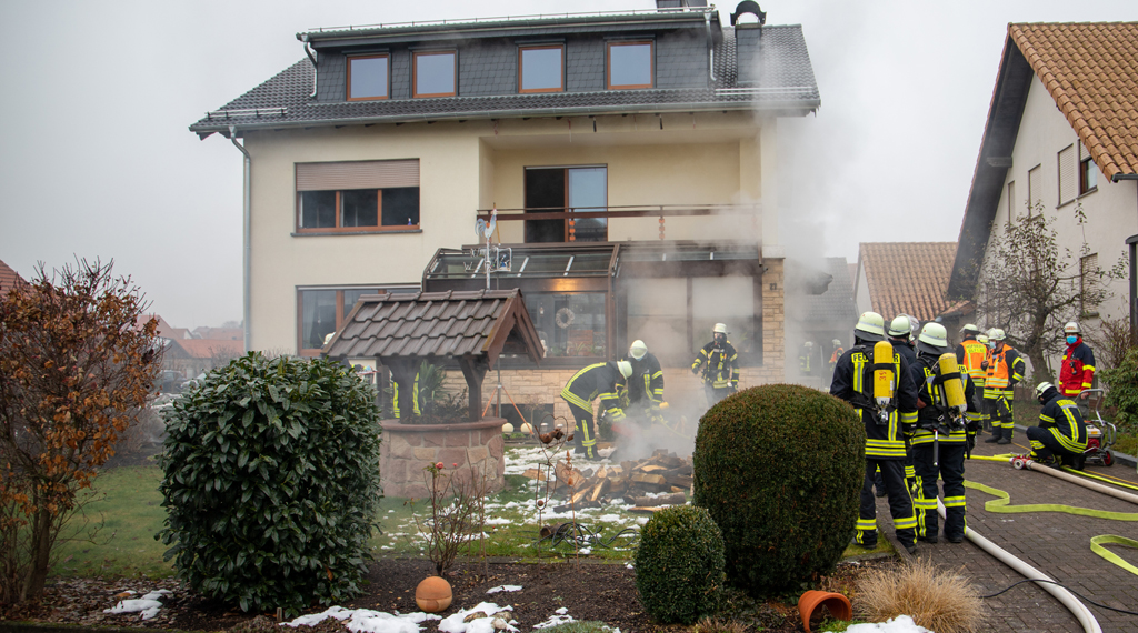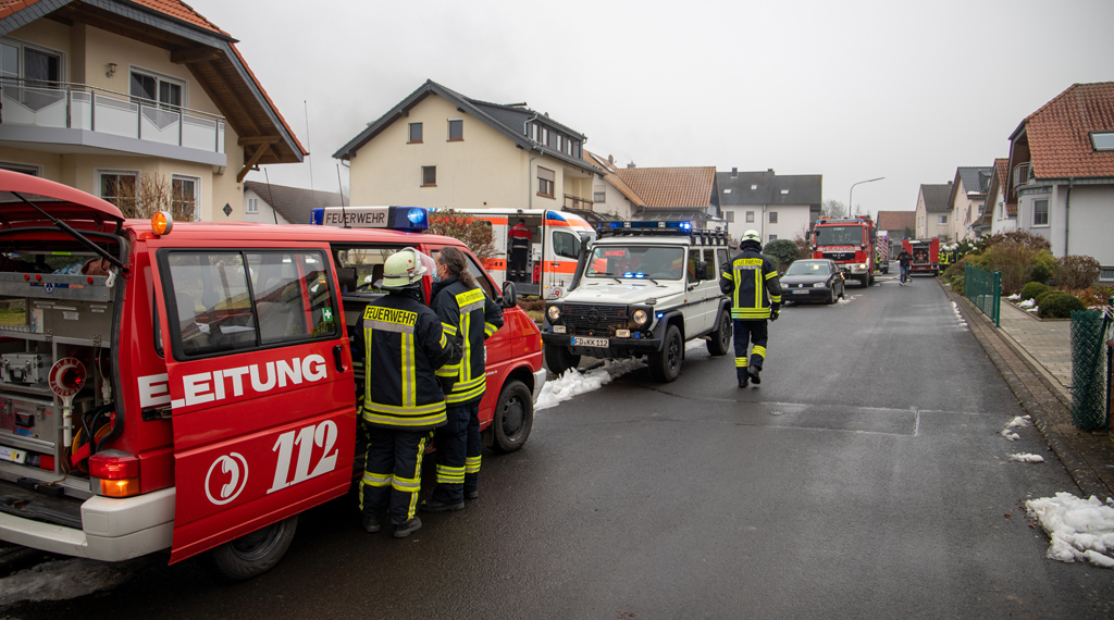 In Niederbieber wurde die Feuerwehr am Sonntag gegen 12.30 Uhr zu einem Kellerbrand alarmiert. Beim Eintreffen vor Ort stellten die insgesamt 60 Einsatzkräfte der Feuerwehren Hofbieber, Niederbieber und Langenbieber fest, dass der Heizungsraum, in dem sich eine Holzheizung inklusive Lager befindet, in Vollbrand stand. Durch das Treppenhaus zog der Brandrauch in mehrere Etagen. Die Bewohner hatten schon selbstständig das Haus verlassen. Mit zwei Trupps unter Atemschutz wurde das Feuer im Innenangriff bekämpft. Parallel wurde durch das Setzen von Rauchschutzvorhängen die weitere Rauchausbreitung verhindert. Nachdem das Feuer gelöscht war, wurden der Brandraum und alle betroffenen Räumlichkeiten des Hauses mit Drucklüftern entraucht und die Einsatzstelle der Polizei zwecks Ursachenermittlung übergeben. +++