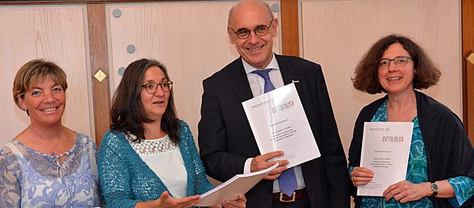Hünfeld. Ganz konkrete Vorschläge, aber auch eine hohe Identifikation mit ihrer Heimatstadt und ihrem Heimatdorf, dass waren prägende Ergebnisse einer Befragung von Kindern und Jugendlichen im Alter von 10-13 Jahren sowie 13-16 Jahren, die unter dem Arbeitstitel „Jugend aktiv“ im Rahmen des IKEK-Programms die Hochschule Fulda für die Stadt Hünfeld vorgenommen hat. Professorin Dr. Marina Ritter und Privatdozentin Dr. Jutta Buchner-Fuhs konnten den Abschlussbericht des Projektes jetzt an Bürgermeister Stefan Schwenk und Stadträtin Karin Grosch übergeben.