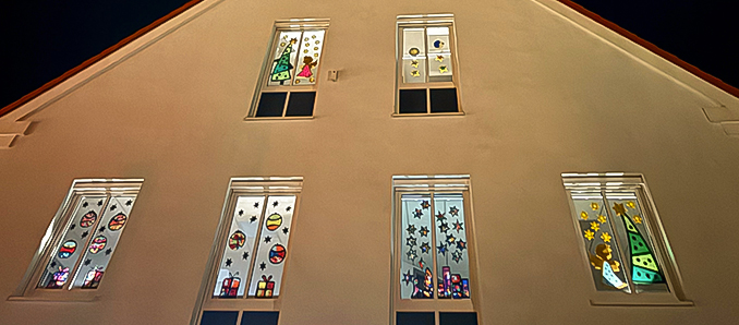 In festlicher Atmosphäre haben Kindergarten- und Vorschulkinder der gemeindlichen Kindergärten die Fenster des Rathauses in Eiterfeld adventlich geschmückt. Die liebevoll gestalteten Motive werden nun jeden Abend für einige Stunden beleuchtet und laden Bürgerinnen und Bürger zum Verweilen und Bestaunen ein.