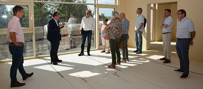 Der Neubau der Kindertagesstätte am Molzbacher Berg in Hünfeld geht in großen Schritten voran. „Die Arbeiten im Innenbereich sind auf der Zielgeraden und auch das Außengelände und der neue Parkplatz nehmen Tag für Tag mehr Form an“, sagte Bürgermeister Benjamin Tschesnok bei der Baustellenbegehung des Ältestenrats und des Magistrats. Im August sollen die ersten Kinder in der neuen Kita spielen.