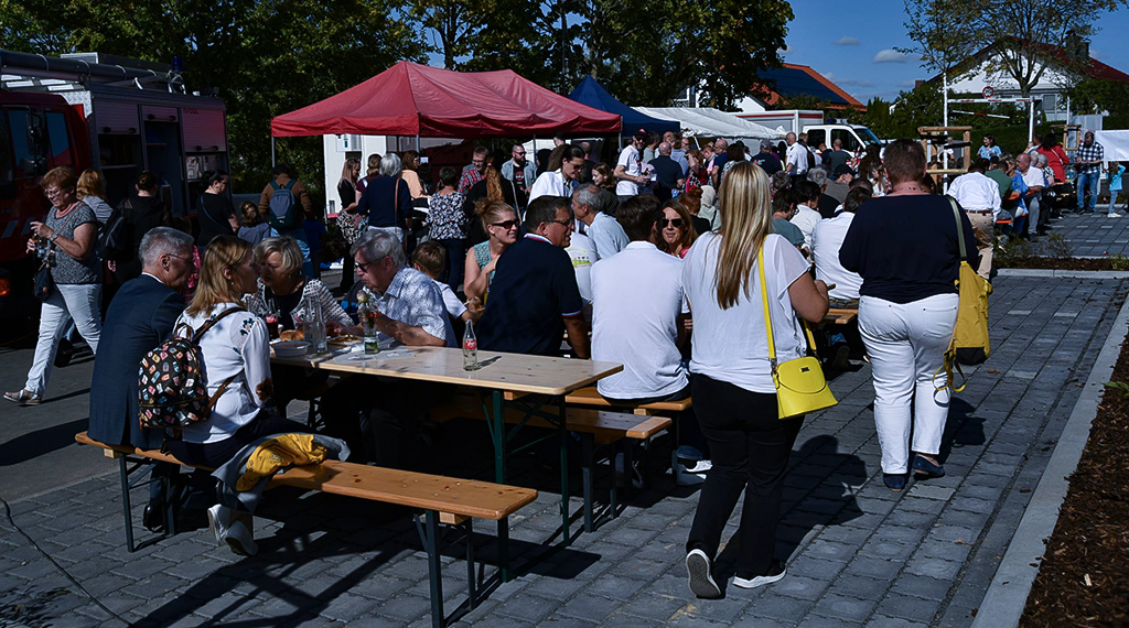 Als Wahlkreisabgeordneter gratulierte Thomas Hering zu der neuen Einrichtung und Pfarrer Dr. Michael Müller nahm die kirchliche Segnung vor. Er sprach davon, dass die Gott die Menschen liebe und besonders die Kinder, an deren Vorbild Erwachsene sich orientieren könnten. Für die Eltern übergaben Yvonne Bott und Anna Buja einen Korb mit Salz und Brot sowie eine Zeitkapsel. Die Kinder hätten beste Bedingungen, um in der Einrichtung zu wachsen. Mit Liedern und Vorführen umrahmten die Schulanfängergruppen den offiziellen Teil. Im Anschluss fand ein großes Kinderfest statt, bei dem die Kinder auf der Hüpfburg des DRK toben konnten. Außerdem gab es eine Fahrzeugschau, Informationsstände des DRK, Kaffee und Kuchen sowie deftige Gerichte vom Verpflegungszug der DRK-Bereitschaft. +++ pm