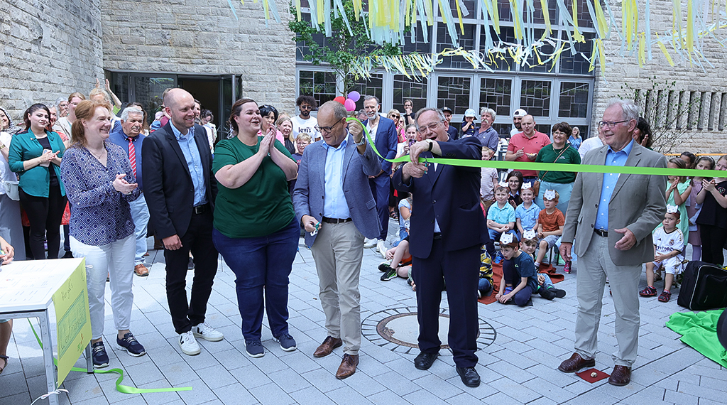 Nachdem Ende September 2021 in der Fuldaer Dr.-Dietz-Straße 17a der symbolische Spatenstich für den Neubau der Kindertagesstätte „St. Pius“ in direkter Nachbarschaft zur Katholischen Kirchengemeinde „St. Pius“ gesetzt wurde, wurde am heutigen Samstag im Beisein von Fuldas Schul- und Sozialdezernent und Bürgermeister der Stadt Fulda, Dag Wehner (CDU), sowie dem stellvertretenden Fraktionsvorsitzenden der CDU-Stadtverordnetenfraktion und Landtagsabgeordneten Thomas Hering (CDU), geladenen Ehrengästen, Vertreten der Kirche und vielen Kindern der Kita und deren Eltern im Rahmen eines Eröffnungsfestes die feierliche Einweihung des Gemeinschaftsprojektes der Katholischen Kirchengemeinde „St. Pius“ als Trägerin der Betreuungseinrichtung und der Stadt Fulda als Bauherrin vollzogen.