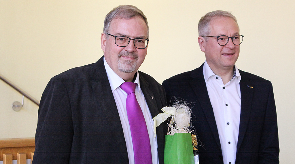 Nebenbei engagiert sich der 60-Jährige noch ehrenamtlich in seiner Kasseler Heimatgemeinde. Dekan Dr. Thorsten Waap dankte dem Kreisamtsleiter für seine Arbeit. In einer Andacht skizzierte der Dekan die Bedeutung von Verwaltung aus theologischer Sicht. „Ein Verwalter soll das ihm anvertraute Geld nutzen, um großherzig Beziehungen und Netzwerke zu knüpfen,“ so Waap. Ramona Bauschmann, Leiterin des Sachgebiets Landeskirchliches Personal aus dem Landeskirchenamt, sprach in ihrem Grußwort von Bornscheuers unermüdlichem Einsatz für die Landeskirche. „Von so einem roten Faden im Lebenslauf kann man heute nur noch träumen,“ sagte sie.