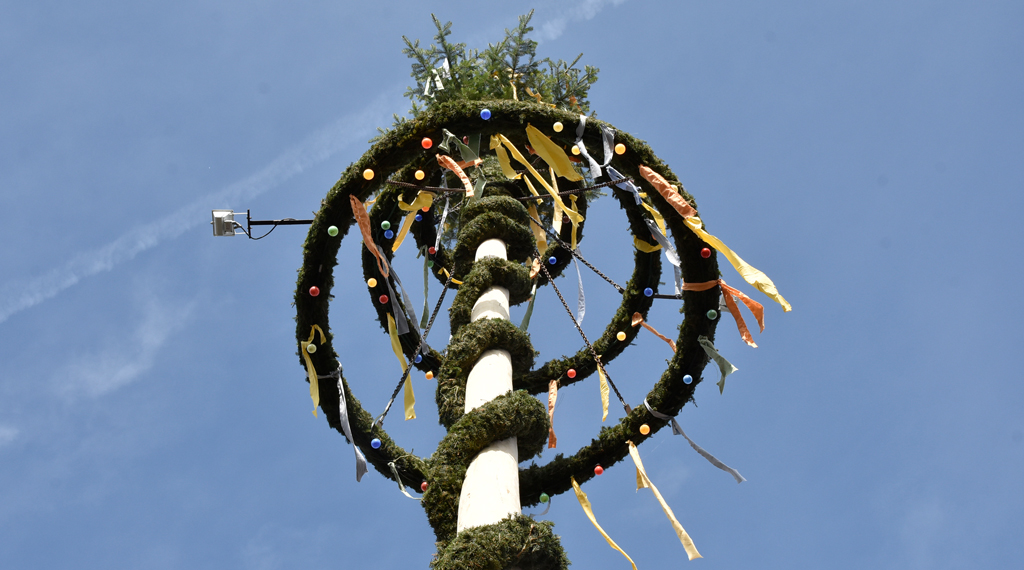 Die Kirmesburschen und -mädchen von Rasdorf hat die Corona-Pandemie aber nicht daran gehindert einen Kirmesbaum am Anger aufzustellen. Auch wenn der Kirmestanz um den prächtig geschmückten Baum und die übrigen Festivitäten ausfallen mussten, so wollten die 20 Burschen und Mädchen mit Ploatsknecht Moritz Stark und Ploatsmoard Emily Wiegand daran erinnern, dass Kirchweih ist. Gemeinsam besuchten sie in ihrer Kirmeskleidung den Sonntagsgottesdienst in der Rasdorfer Stiftskirche. Pfarrer Markus Blümel bedankte sich für dieses Zeichen, dass Kirmes und Kirche zusammengehören. Die Begrenzung durch Corona passe auch gut zum Sonntag der Weltmission, so Markus Blümel in seiner Predigt. So wie man durch Maskenpflicht und Abstand seine Solidarität mit seinen Mitmenschen zeige, damit diese nicht erkrankten, müsse man auch solidarisch sein mit den notleidenden Menschen in der Welt. Bürgermeister Jürgen Hahn dankte der Kirmesgesellschaft für ihr Engagement. Es zeige, dass die Kirmes in Rasdorf eine echte Tradition habe. Leider war ein Gruppenbild beim Kirmesbaum nicht möglich. Die Abstandspflicht hätte mit mehr als 30 Meter fast das Doppelte des 17,5 Meter hohen Kirmesbaums betragen. +++ nh/wim