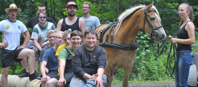 Michelsrombach. Im Rahmen des diesjährigen Jubiläums dachten sich die Mädchen und Jungen der Kirmes Michelsrombach etwas Besonderes aus. Der Baum sollte in diesem Jahr wie zu Anfangszeiten der Kirmes mit einem Pferd aus dem Wald gezogen werden. Hierzu organisierte das Kirmesmitglied Miriam Kirsten gemeinsam mit dem diesjährigen Ploatzknecht Niklas Gabriel ein Pferd, welches für Holz-Rückearbeiten geeignet ist. Miriam Kirsten, die den elfjährigen Haflinger betreute, dazu: „Wir sind froh, dass alles reibungslos lief und das Pferd, welches im Ziehen von Lasten erprobt ist, ohne Probleme seine Aufgabe bewältigte.“ Niklas Gabriel fügte als Ploatzknecht an: „Heute haben wir es mit den modernen, technischen Hilfsmittel leichter als früher, den Kirmesbaum für das Kirchweih-Fest, welches bei uns traditionell am dritten September-Wochenende gefeiert wird, herzurichten. Nichtsdestotrotz ist es für uns eine tolle Erfahrung gewesen, zu sehen, wie früher der Baum geholt wurde und mit welchem Aufwand das verbunden war.“ Nachdem der Baum nun am Festplatz liegt und in den nächsten Tagen und Wochen für das Kirmes-Wochenende vorbereitet und anschließend aufgestellt wird, laufen nebenbei die Vorbereitungen für das nächste Jubiläums-Highlight. Denn in diesem Jahr wird die überregional bekannte Partyband „die Lechis“ am Kirmes-Samstag, den 15.09.2018, im Festzelt auftreten, für die schon jetzt Karten an Vorverkaufsstellen sowie durch die Mitglieder der Kirmesgesellschaft verkauft werden. +++