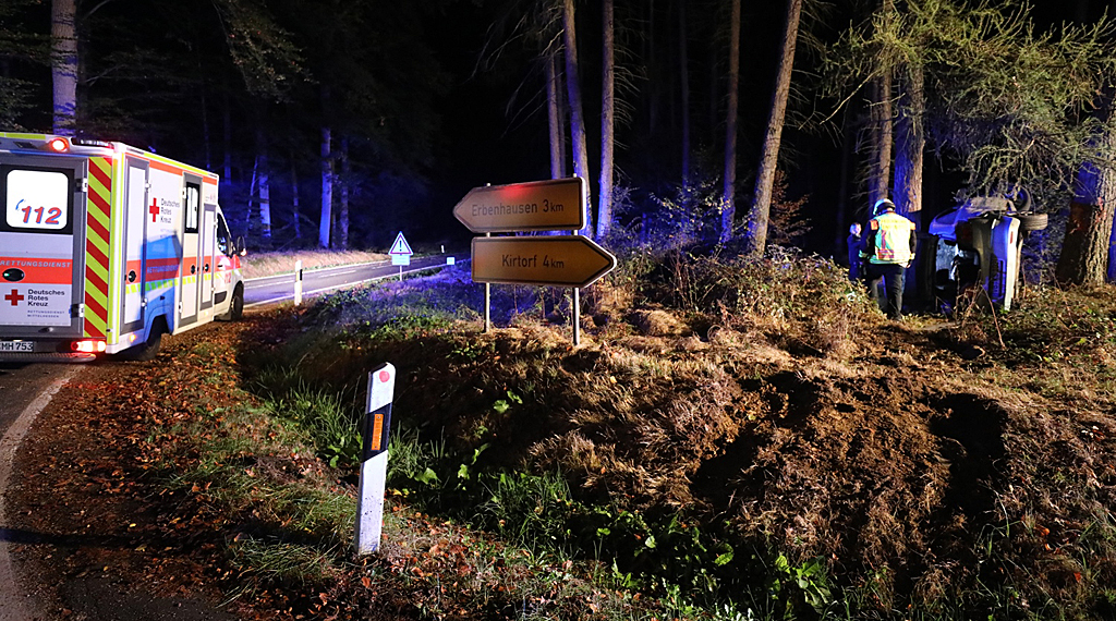 Ein schwerer Verkehrsunfall ereignete sich in der Nacht zum Donnerstag auf der Landesstraße zwischen Kirtorf und dem Gemündener Ortsteil Ehringshausen. Laut ersten Polizeiangaben verlor ein 21-jähriger Autofahrer aus Kirtorf die Kontrolle über sein Fahrzeug und fuhr an einer Weggabelung geradeaus. Das Fahrzeug prallte in die Böschung, hob ab und schleuderte in der Luft gegen zwei Bäume, der 21-Jährige wurde zunächst im Unfallwrack eingeschlossen.