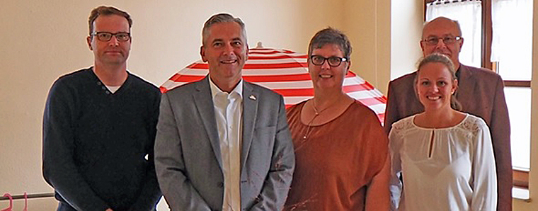 Herr Hartmann (Vors. Personalrat), Bürgermeister Froß, Frau Plachtzik und Frau Völler (Kita-Leitung), dahinter Herr Ceming (Fachbereich Soziales und Vereine)