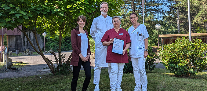 „Diabetes ist die Pandemie des 21. Jahrhunderts. Zu einer umfassenden medizinischen Versorgung gehört es daher, die verschiedenen Diabetes-Krankheitsbilder auch im stationären Umfeld im Blick zu behalten“, betont Andrea Merle-Schmitt, Diabetesberaterin der Deutschen Diabetes Gesellschaft (DDG) am Kreiskrankenhaus des Vogelsbergkreises in Alsfeld (KKA). Aus diesem Grund sorgt sie gemeinsam mit Dr. Johannes-Georg Elsing, Chefarzt Innere Medizin, Facharzt für Innere Medizin, Gastroenterologie, Notfallmedizin, Palliativmedizin, Proktologie und Ernährungsmedizin, Swenja Roth, Qualitätsmanagementbeauftragte am KKA, und Schwester Susanne Thiel, interne Multiplikatorin auf Station, dass Diabetes-Erkrankungen auch am KKA im Krankenhaus-Alltag mitgedacht werden. Klinikweite Standards zur Diabetesversorgung tragen dazu bei.