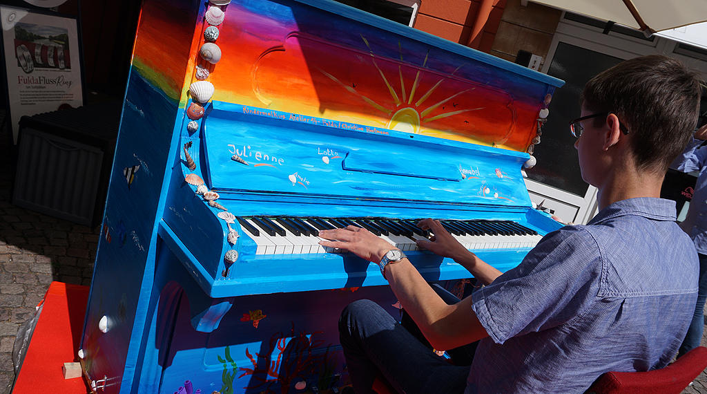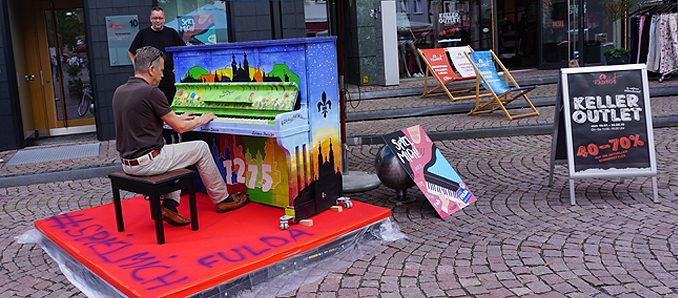 Seit gestern können in der Fuldaer Innenstadt im Rahmen der vom Verein „City Marketing Fulda“ im Februar diesen Jahres gestarteten Initiative „Spiel mich – so klingt Fulda!“ drei sogenannte „Straßenklaviere“ bespielt werden. Damit ist Jeder dazu eingeladen, die Musikinstrumente zu nutzen beziehungsweise sich an diesen musikalisch zu betätigen. Zu finden sind die Klaviere an den Standorten „Am Buttermarkt“, in der „Karlstraße“ sowie „Am Bahnhof“. Zur Verfügung stehen werden die Straßenklaviere musikalischen Passantinnen und Passanten vorerst noch bis zum 01. September 2019.