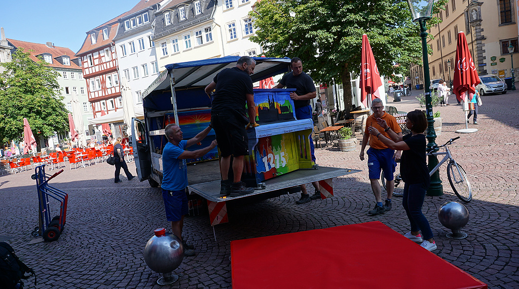 Geplant ist diese Aktion vorerst bis zum 01. September 2019. Die Klaviere sind täglich von 11:00- bis 20:00 Uhr bespielbar. Wie Edeltraud Maria Leib gestern sagte, möchte man selbstverständlich Rücksicht auf die Anwohner nehmen. Sicherlich werde aber niemand, der gerade ein tolles Stück spielt, um Punkt acht Uhr des Klavieres verwiesen“, spaßt sie. Spätestens um 22:00 Uhr sei aber definitiv Schluss.