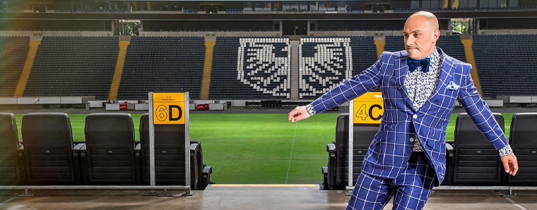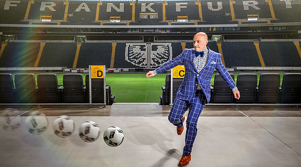 Franco Lionti trägt normalerweise in seinem Job die Sportsachen und Turnschuhe des Ausrüsters der Eintracht. Nur selten hat der modebewusste Italiener Gelegenheit, sich richtig schick anzuziehen. Nun hat er einen Maßanzug in seinem Kleiderschrank, denn Lionti zählt zu den zwölf Models im Jahr 2016, die außergewöhnliche Berufe haben und von Nikita Kulikov im Maßanzug fotografiert werden. Der Zeugwart hat sich für einen dunkelblauen Maßanzug mit markanten weißen Karos entschieden. Passender Weise stammt der Stoff von dem italienischen Edelweber Barberis. „Die Kampagne von Maßkonfektionär Stephan Görner und PR-Profi Sven Müller steht für Anerkennung, Wertschätzung und Respekt gegenüber Berufsgruppen und für die Menschen, die diese Berufe ausüben“, so Stephan Görner.