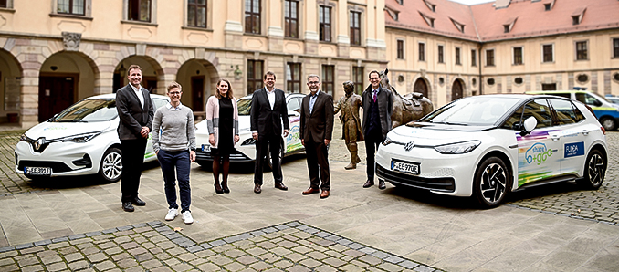 Ab sofort können Bürgerinnen und Bürger sowie Besucher der Stadtregion ein klimaschonendes E-Fahrzeug buchen. „share+go“ macht’s möglich. Zunächst werden vier E-Fahrzeuge bereitgestellt, die bequem per App buchbar sind. Das gemeinsame Nutzen von Autos spart Geld und schont Ressourcen. In der Startphase umfasst der Fahrzeug-Pool von share+go einen VW ID.3, einen Hyundai Kona sowie zwei Renault Zoe. Ein fünftes Fahrzeug ist bereits bestellt, kann wegen der Chip-Knappheit aber zurzeit nicht ausgeliefert werden. Die Stadt und der Infrastruktur-Dienstleister haben sich für eine stationsbasierte Lösung entschieden: Die Fahrzeuge stehen an festgelegten Standorten zur Abholung bereit und müssen nach der Fahrt dort auch wieder abgegeben und aufgeladen werden.
