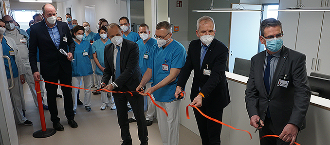 Nach Fertigstellung des INO-Zentrums im Mai 2019 ist die neue Station der Tumorklinik damit die erste vollständig sanierte Station im Haupthaus. Heute wurde die Station offiziell von dem stellvertretenden Aufsichtsratsvorsitzenden der Klinikum Fulda gAG, Bürgermeister Dag Wehner (CDU), dem Vorstand der Klinikum Fulda gAG, Priv.-Doz. Dr. Thomas Menzel und Burkhard Bingel, dem Team der Tumorklinik rund um den Direktor Prof. Dr. Heinz-Gert Höffkes sowie Peter Neidhardt, Geschäftsbereichsleiter Bau & Technik, eingeweiht und durch die Klinikseelsorger, Pfarrerin Martina Walter und Pfarrer Peter Bierschenk, gesegnet.