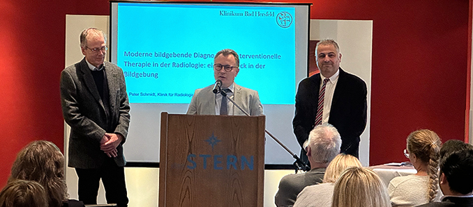 Mit großer Resonanz fand am Mittwoch vergangener Woche die ärztliche Fortbildungsveranstaltung zur Vorstellung des neuen Gefäßzentrums Hersfeld-Rotenburg im Romantik-Hotel "Zum Stern" in Bad Hersfeld statt. Über 60 Teilnehmende, darunter niedergelassene Ärzte und Klinikärzte aus der Region, nahmen an der Veranstaltung teil, die sich als voller Erfolg erwies.