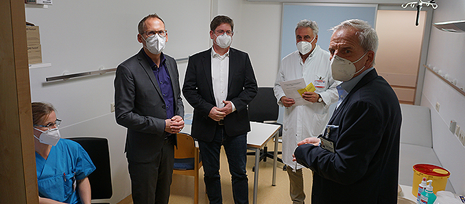 Der hessische Minister für Soziales und Integration, Kai Klose (Bündnis 90/Die Grünen), hat am Samstag das Impfzentrum am Klinikum Fulda besucht. „Wir sind dabei, gemeinsam die Impfkapazität hochzufahren“, sagte er bei seiner Stippvisite in Fulda. Mit Blick auf die Impfstoffversorgung sagte Minister Klose, dass die Verzögerung durch den Bund bei der Lieferung nicht gerade helfe. Im Moment gehe man davon aus, dass etwa ein Drittel nicht von der Bundesregierung geliefert werde. Der Bund müsse jetzt dafür Sorge tragen, das geliefert werde. Möglicherweise sei man von der Nachfrage etwas überfahren worden, mutmaßt der Hessische Minister. Der Bund müsse das jetzt aber in Griff bekommen, er habe die Strukturen und das Geld, sagte er. Aber trotz der momentanen Schwierigkeiten, appellierte der hessische Minister für Soziales und Integration erneut an alle Menschen, die bislang noch keine Impfung erhalten haben, sich impfen zu lassen. Ähnlich wie der Grünenpolitiker äußerten sich auch Fuldas Oberbürgermeister Dr. Heiko Wingenfeld und der Vorstand des Klinikums Fulda, Priv.-Doz. Dr. med. Thomas Menzel. Letzterer mache sich derzeit für den Impfstoff des Herstellers Moderna stark, der Mediziner halte diesen für die Auffrischimpfung für den im Vergleich zu dem des Herstellers BioNTech/Pfizer geeigneteren Impfstoff. Mit Blick auf die Nebenwirkung sagte er: „Die Dosis beim ‚boostern‘ sei halb so hoch wie bei der eigentlichen Impfung.“