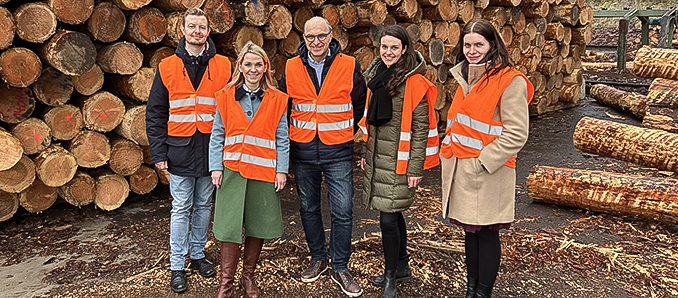 Auf Einladung von Gangolf Hosenfeld besuchte Wiebke Knell, Sprecherin für Wald und Forstpolitik der Freien Demokraten im Hessischen Landtag, das Sägewerk Gebr. Hosenfeld in der Gemeinde Hosenfeld. Gemeinsam mit Mario Klotzsche, Kreisvorsitzender der FDP, und Julia Möbus, Geschäftsführerin des Deutschen Säge- und Holzindustrie Bundesverbands, informierte sie sich über die vielfältige Nutzung von Holz aus heimischen Wäldern.