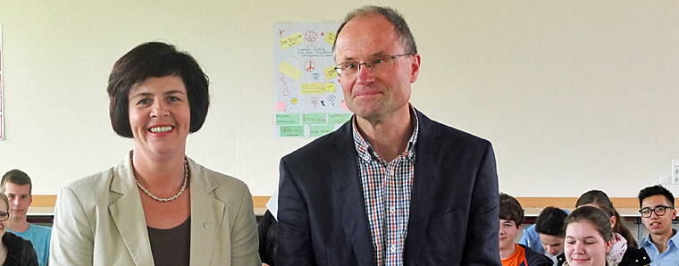 Die mehr als 40 Schülerinnen und Schüler zweier neunter Klassen waren ausgesprochen gut vorbereitet. Viel Fragen beleuchteten in der Tat das Themengebiet Europa. „Warum nimmt man ein industrieschwaches Land wie Kroatien in die EU auf?“ „Warum wird den Griechen immer noch geholfen?“ „Gibt es schon bald eine europäische Armee?“ „Was halten Sie vom Euro?“ So und ähnlich lauteten die Fragen der Neuntklässler. Birgit Kömpel, die einige Jahre in London gelebt hat und Vorsitzende der deutsch-irischen Parlamentariergruppe ist, präsentierte sich als ausgesprochener Europa-Fan. Sie findet die Einführung des Euros richtig und wünscht sich, dass sich die Länder bei Einhaltung gewisser Regeln gegenseitig unterstützen.