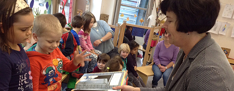 Fulda. „Lesen fördert Kreativität und regt die Fantasie an. Insbesondere für die Entwicklung unserer Kinder ist es wichtig, diese Eigenschaften zu fördern.“ Die Bundestagsabgeordnete Birgit Kömpel liest gerne selbst – und sie liest auch sehr gerne vor. So nutzte sie den bundesweiten Vorlesetag, um gleich bei zwei Kindergärten vorbeizuschauen und den Kindern dort eine Geschichte vorzutragen. Sie besuchte in Blankenau eine eher kleine Einrichtung und in Lauterbach bei den Lauterstrolchen eine richtig große. Das Echo war jedenfalls identisch. Den Jungen und Mädchen gefiel die Geschichte vom Wesen, das „Irgendwie anders“ heißt und auch irgendwie anders ist. Deshalb hat es Schwierigkeiten, akzeptiert zu werden. Diese Probleme lösen sich erst auf, als es einen Freund trifft, der ebenfalls anders ist. Kömpel: „Das Buch zeigt auf, dass wir tolerant sein müssen. Das ist ein wichtiges Signal für die aktuelle Situation in unserem Land.“ Die Kinder jedenfalls schienen die Botschaft verstanden zu haben. Sie hatten die Abgeordnete, selbst Mutter zweier Kinder, schnell in ihr Herz geschlossen und ließen sie erst einmal nicht mehr gehen. Birgit Kömpel nahm sich für die Kleinen noch ein wenig Zeit und versprach, bald wiederzukommen. +++ fuldainfo
