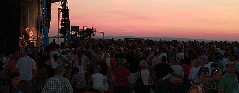 „Die Fläche oben auf dem Plateau ist so groß, dass locker 10.000 Menschen Platz hätten. Wir müssen aber dafür sorgen, dass die Sicherheit aller Gäste gewahrt ist, und daher ist auf Grund des zur Verfügung stehenden Fluchtwegs die maximale Kapazität auf 3.600 Besucher festgelegt, die ja alle selbst auf- und absteigen müssen“, ergänzt sein Kollege Klee und fügt hinzu: „Hier ist gutes Schuhwerk und eine ordentliche Kondition vonnöten. Dafür wird man aber mit einem unvergesslichen Abend in einzigartigem Ambiente belohnt. +++ fuldainfo | lk