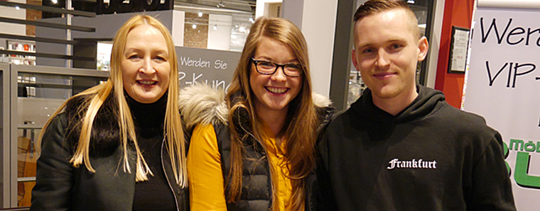 An ihrem Arbeitsplatz bei Möbel Buhl wurde Nicole Schäfer (Mitte) von
