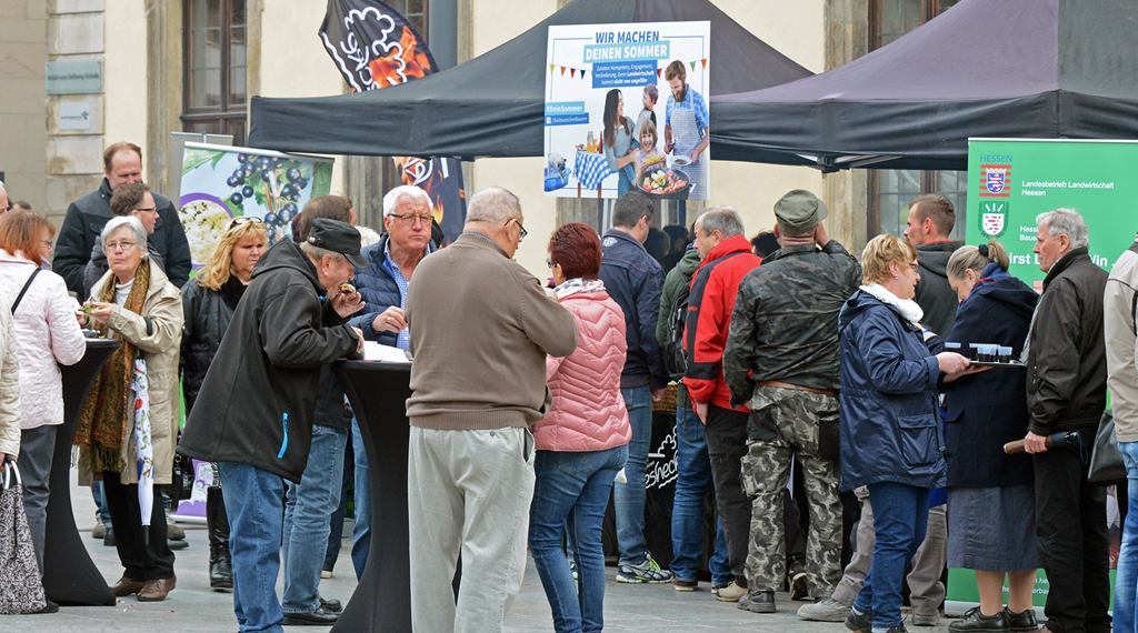 Der Vorsitzende des Kreisbauerverbandes Matthias Bug erklärte, Hintergrund dieser Aktion sei in den Dialog mit den Bürgern zu treten und ein Miteinander zwischen den Bürgern und Landwirten zu fördern. Zusammen mit Geschäftsführer Dr. Hubert Beier trat Matthias Bug mit den Fuldaern in Kontakt und war dabei offen für die Anliegen der Verbraucher. Beide erklärten sie, dass gerade die Landwirte aus der Region gesunde, qualitativ hochwertige Lebensmittel, wie Fleisch, Gemüse und Obst lieferten. Dies zu betonen war den anwesenden Landwirten besonders wichtig. In einem Zelt wurden „Rhöner Döner und „Milseburger“ frisch zubereitet und sorgten für große Begeisterung „Wir wollen den Verbrauchern klar machen, wo ihre Lebensmittel herkommen und auzeigen, dass regionale Landwirte dahinterstehen“ sagte Matthias Bug, Vorsitzender des Kreisbauernverbandes Fulda-Hünfeld.
