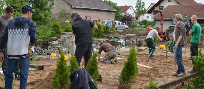 Auch beim Pflanzen der Thuja-Hecke wurde kräftig mit angepackt. Dabei erläuterte Landschaftsarchitektin und Ausbilderin Sabine Stein, dass es beim Pflanzen einiges zu beachten gebe: „Man braucht erst den Graben, dann müssen die Pflanzen in der richtigen Höhe eingesetzt werden. Auch der Grenzabstand zum Nachbarn ist zu beachten, die Ausrichtung der Hecke muss stimmen, die einzelne Pflanze muss gerade sitzen und dann sollte auch jede Pflanze einen Gießrand haben.“ Deutlich wurde bei dem Infotag, dass der Garten- und Landschaftsbau zwar körperlich fordernd und Fachwissen nötig ist, aber auch viel Abwechslung bietet, so dass jeder seine Nische finden kann. „Wir suchen Nachwuchs und Quereinsteiger, die helfende Tätigkeiten aus-führen“, unterstrich Wilhelm Hartmann, Inhaber der Gärtnerei Hartmann. „Wir brauchen engagierte Helfer. Über die Jahre kann sich aus einer Hilfs- und Anlernkraft auch eine Art Facharbeiter entwickeln, wenn das Interesse an der Tätigkeit da ist und der persönliche Einsatz stimmt“, so Hartmann. „Learning by doing“ sei das Motto.