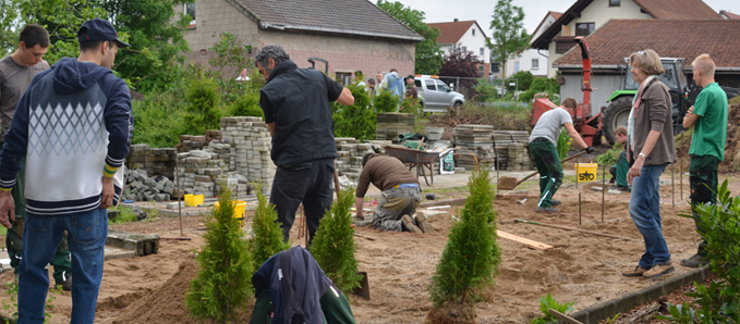 Auch beim Pflanzen der Thuja-Hecke wurde kräftig mit angepackt