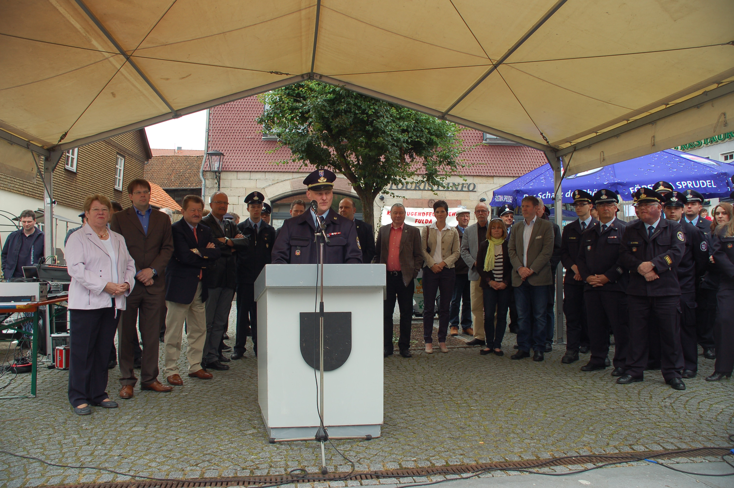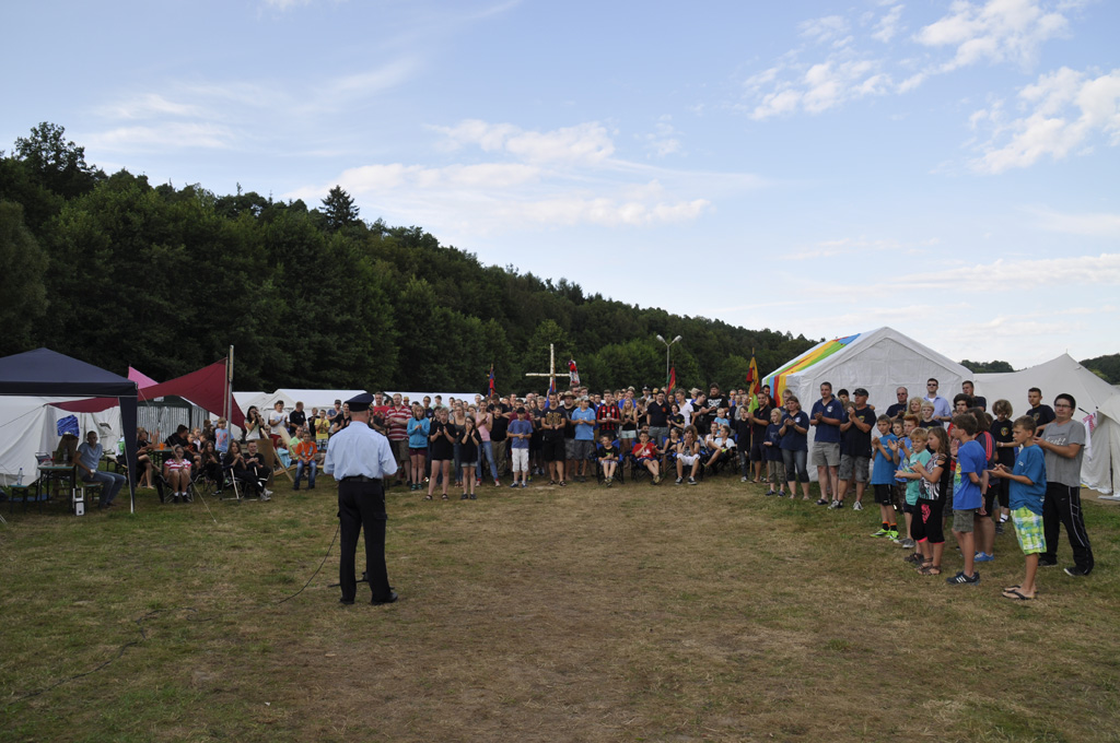 Nachdem am Donnerstagabend die komplette Zeltstadt aufgestellt war wurde das Zeltlager offiziell von Kreisjugendfeuerwehrwart Steffen Hohmann für eröffnet erklärt. Anwesend waren dabei viele Gäste, wie Landrat Bernd Woide, Bürgermeister Klaus-Dieter Vogel, Bundestagsabgeordneter Michael Brand, Detlef Reich von der SV-Sparkassenversicherung, der stellvertretende Kreisbrandinspektor Bernd Schädel, Erster Vorsitzender des Kreisfeuerwehrverbandes Fulda Lothar Mihm, Geschäftsführerin des Kreisfeuerwehrverbandes Fulda Julia Roeschies, Gemeindebrandinspektor Martin Rühl sowie viele weitere Feuerwehrführungskräfte aus den Feuerwehren des Kreisgebietes. Alle wünschten den Jugendlichen eine schöne Zeit mit richtig viel Spaß nach den anstrengenden Schulwochen.
