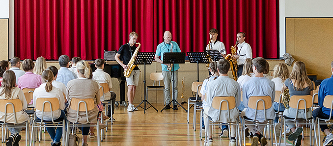 Beim Musikschultag des Landkreises Fulda hatten Schülerinnen und Schüler die Gelegenheit, sich – teilweise erstmals – vor einem Publikum zu präsentieren. In der Aula erklang Musik von Blech- und Holzbläsern aus den Klassen von Martin Genßler und Willi Genßler. Im Musikraum musizierten Schülerinnen und Schüler aus den Klassen von Katharina Antonovska (Violoncello), Karl-Heinz Bachmann-Wießner (Klavier), Lidia Koch (Violine) und Oleksii Sulima (Klavier).