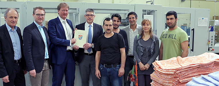 Für die Arbeit des Vereins „Duale Integration e. V.“ überreichte Landrat Manfred Görig einen Scheck aus dem Arbeitsmarktbudget des Landes Hessen. Der Verein unter dem Vorsitz von Burkhard Oel sucht Praktikums-, Ausbildungs- und Arbeitsplätze für Flüchtlinge und bietet Sprachkurse an. Foto: Gaby Richter