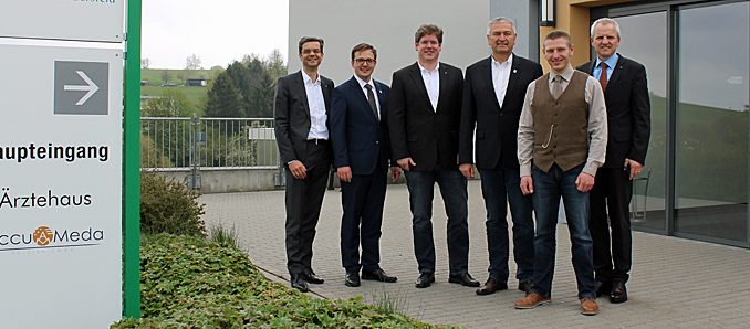 Gersfeld (Rhön). Der Landrat des Landkreises Fulda Bernd Woide (CDU) und der Erste Kreisbeigeordnete des Landkreises Frederik Schmitt (CDU) besuchten in Begleitung des Bürgermeisters der Stadt Gersfeld Steffen Korell (CDU) das Klinikum Gersfeld. Empfangen wurden sie von den Geschäftsführern André Eydt, Jan Garlepp sowie Priv.-Doz. Dr. med. Thomas Menzel, die den Gästen von der sehr erfreulichen Entwicklung des Gersfelder Klinikums berichteten, das im Jahr 2014 vom Klinikum Fulda übernommen worden war.