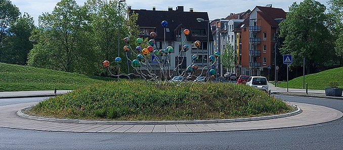 Ab dem 22. Mai beginnen umfangreichere Instandsetzungsarbeiten an der Fahrbahnbahn des Kreisels im Bereich der Uffhäuser Straße/ Meisebacher Straße/ Lappenlied. Eingebettet in diese Maßnahme zur Erneuerung der Kreisfahrbahn ist auch eine Maßnahme des Abwasserbetriebs. Hierbei werden Schachtsanierungsarbeiten durchgeführt. Der gesamte Fahrbahnoberbau in den Fahrspuren zeigt erhebliche Verdrückungen und Rissbildungen. Dieser ist als nicht mehr verkehrssicher einzustufen. Daher ist eine Erneuerung der Fahrspuren vorgesehen. Um die Bauzeit so kurz wie möglich zu halten und die Ausbauqualität zu erhöhen, wird die bauausführende Firma Räuber Bauunternehmen GmbH die Maßnahme unter einer Vollsperrung ausführen. Die Maßnahme dauert voraussichtlich bis zum 23. Juni, je nach Baufortschritt.
