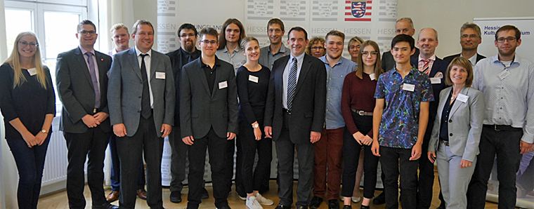 Auch in diesem Jahr haben Hessens Schülerinnen und Schüler hervorragend bei den „Jugend forscht“-Wettbewerben abgeschnitten. Grund genug für Kultusminister Prof. Dr. R. Alexander Lorz, den siegreichen Nachwuchsforscherinnen und Nachwuchsforschern des Bundesentscheides einen besonderen Empfang in Wiesbaden zu bereiten und sich mit ihnen über die einzelnen Projekte auszutauschen. „Was Ihr geleistet habt, ist mehr als beeindruckend! Ihr legt mit Euren Leistungen den Grundstein für eine erfolgreiche Karriere und könnt zu Recht stolz auf Euch sein. Ich freue mich für jeden Einzelnen und wünsche weiterhin viel Erfolg beim Forschen“, sagte der Minister in seiner kurzen Laudatio auf die diesjährigen Preisträgerinnen und Preisträger.