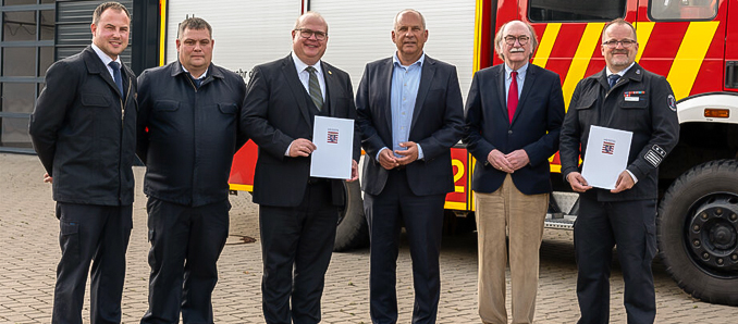 Der hessische Innenminister Roman Poseck hat dem Bürgermeister der Stadt Alsfeld, Stephan Paule, zwei Zuwendungsbescheide mit einem Gesamtvolumen von mehr als 140.000 Euro überreicht. Das Land Hessen fördert damit sowohl die Ausstattung der Feuerwehr Alsfeld als auch Maßnahmen zur Erhöhung der Sicherheit bei öffentlichen Veranstaltungen.