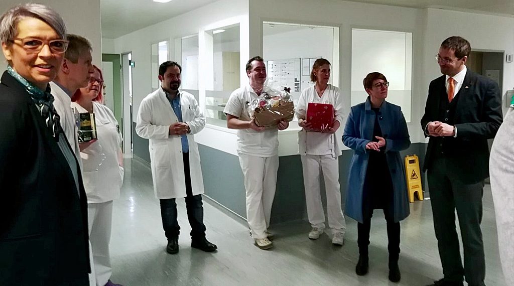 Auch die Angestellten im Bad Hersfelder Klinikum, im Rotenburger Kreiskrankenhaus und im HKZ haben Weihnachten viel zu tun. Weitere der insgesamt elf Stationen waren für den Landrat die Rettungswachen in Rotenburg, Bebra und am Europakreisel in der Kreisstadt, zwischendurch besuchte Koch drei Polizeistationen. Bei der Bahnhofsmission in Bad Hersfeld wird traditionell eine Weihnachtsfeier für Alleinstehende oder Wohnungslose angeboten. Landrat Koch überreichte der Leiterin, Silvia Hemel, einen Scheck in Höhe von 375 Euro. „Mit dem Geld wird für die Menschen hier in der Bahnhofsmission gekocht und durch die vielen Essensspenden wie Stollen oder Plätzchen können wir auch noch kleine Lebensmittelpakete an sie verteilen“, freut sich Hemel.