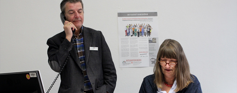 Die Fachleute im Integrationsbüro: Michael Richter (Kommunales Jobcenter KVA) und Beate Remagen (Agentur für Arbeit) beraten Arbeitgeber und Flüchtlinge rund ums Thema Integration in den Arbeitsmarkt.