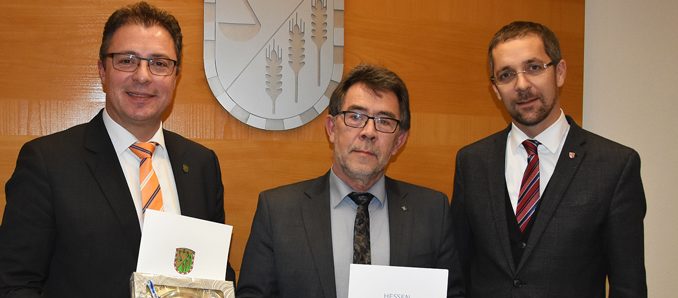 Wildeck/Bad Hersfeld. Für „besondere Verdienste um das Gemeinwohl“ wurde Michael Klebsch mit dem Ehrenbrief des Landes Hessen ausgezeichnet. Landrat Dr. Michael Koch überreichte den Landesehrenbrief nun gemeinsam mit Wildecks Bürgermeister Alexander Wirth im Rathaus in Obersuhl. „Dies ist eine hohe Auszeichnung, die nur für langjähriges und verantwortungsvolles Engagement vergeben wird“, lobte der Landrat.