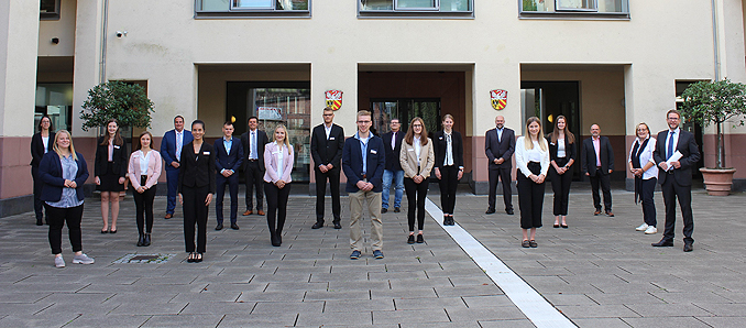 Unter den zwölf neuen Studierenden sind auch drei ehemalige Auszubildende zur Verwaltungsfachangestellten, die aufgrund ihrer hervorragenden Leistungen ein duales Studium beginnen. Wegen der Corona-Pandemie finden die Einführungstage zum Ausbildungsstart in diesem Jahr getrennt nach Berufsbildern statt. Für die neun Nachwuchskräfte im Berufsbild der Verwaltungsfachangestellten fanden die Einführungstage bereits im August statt. Im Rahmen der Einführungstage lernen die Nachwuchskräfte sich untereinander, die Kreisverwaltung sowie ihre Ansprechpartner und Ansprechpartnerinnen kennen. Einen Überblick über die einzelnen beim Main-Kinzig-Kreis vertretenen Gremien und Abteilungen und Fachämter vermittelten Cornelia Gasche und Werner Müller (beide Amt für Personal, Planung und Organisation), Thomas Schmidt (Personalratsvorsitzender), Reiner Joh (Vertrauensperson der Schwerbehindertenvertretung), Gleichstellungsbeauftragte Nicole Dein sowie Bianca Korn (Jugend- und Auszubildendenvertretung). 2020 werden insgesamt 22 Nachwuchskräfte ihre Ausbildung beziehungsweise ihr Studium beim Main-Kinzig-Kreis aufnehmen. Eine Nachwuchskraft im Berufsbild Hygienekontrolleurin wird im Dezember hinzukommen.