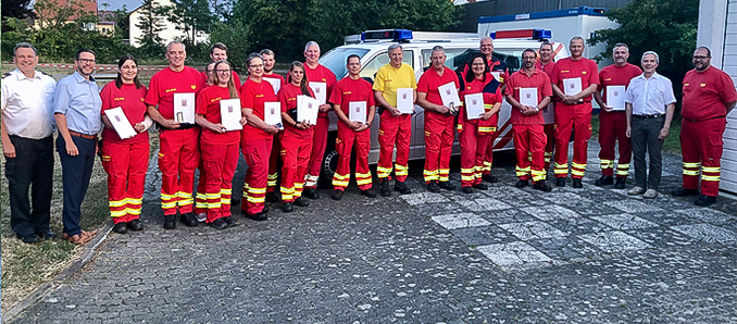 Für lange aktive Dienstzeit erhielten zudem Uwe Kausch die Goldene Katastrophenschutz-Medaille (40 Jahre), Marc Ansmann, Holger Bielich, Udo Daum, Bernd Enders, Dr. Katharina Enders, Alf Franke, Ingo Hauptmann und Lars Volland die Silberne Katastrophenschutz-Medaille (25 Jahre) sowie Alena Brand, Sabine Buschmann, Monika Erdt, Magnus Klug, Peter Kniss, Simon Reul, Nicole Rickert, Frank Sachse und Natascha Schilling die Bronzene Katastrophenschutz-Medaille (10 Jahre). +++ pm
