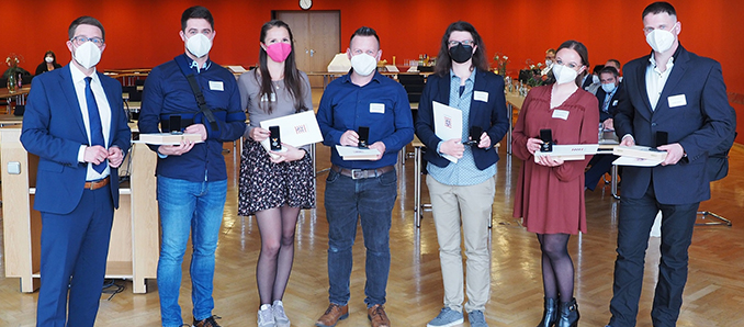 Landrat Thorsten Stolz hat in Vertretung des Hessischen Ministerpräsidenten Volker Bouffier sechs Ersthelferinnen und Ersthelfer mit der Hessischen Rettungsmedaille ausgezeichnet. Es sind Alina Hüttner aus Mespelbrunn, Michelle Okrusch aus Flieden, Isabel Acker aus Wächtersbach, Fabian Just aus Gelnhausen, Christian Slowik aus Langenselbold und Björn Herber aus Limeshain. Die Verleihung sei ihm eine besondere, eine persönliche Ehre, betonte der Landrat in seiner Begrüßung und überbrachte den Geehrten den herzlichen Dank der Hessischen Landesregierung, des Kreisausschusses und aller Anwesenden im Main-Kinzig-Forum in Gelnhausen. „Alle sechs Ersthelferinnen und Ersthelfer haben, genau wie der siebte, Maurice Cox aus Linsengericht, der leider nicht anwesend sein kann, großen Mut und Zivilcourage bewiesen.“