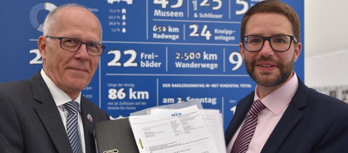 Am Rande der Messe Wächtersbach hat Landrat Thorsten Stolz Bruchköbels Bürgermeister Günter Maibach ein Aktenpaket übergeben, darin enthalten die Baugenehmigung für die Neue Mitte im Stadtzentrum. „Bruchköbel wird sein Gesicht im Kern der Stadt in den nächsten Jahren deutlich verändern. Das ist eine große Chance für dieses prägnante Stadtviertel“, sagte Landrat Thorsten Stolz. Die Stadt Bruchköbel beabsichtigt für die Innenstadtentwicklung, das rund drei Hektar große Areal zwischen Jahnstraße im Westen, der Krebsbachaue im Norden, dem Inneren Ring im Osten und der Hauptstraße im Süden neu zu entwickeln. Der Rückbau auf dem Rathaus-Areal ist das sichtbarste Zeichen für die fortschreitende Entwicklung. Neu errichtet werden sollen gemeinschaftlich genutzte Einrichtungen, darunter das neue Stadthaus, neue Einzelhandels- und Dienstleistungsflächen sowie Wohnraum. „Der Umgestaltungsprozess in der Stadt kommt jetzt in die nächste Phase, wenn es an die Umsetzung geht. Für die Bruchköblerinnen und Bruchköbler ist es wichtig zu sehen: Unsere Stadt kann jetzt, nach intensiver Diskussion über Formen und Nutzungsmöglichkeiten, eine neue, moderne und noch bürgernähere Gestalt annehmen, eine der Grundlagen dafür ist geschaffen“, erklärte Bürgermeister Maibach. +++ pm
