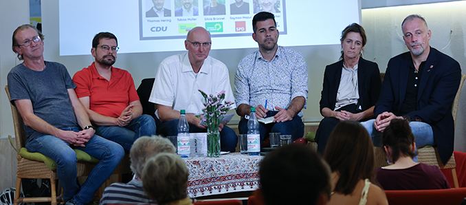 Auf die Frage, wie wir es schaffen, die sich seit nunmehr acht Jahren in Deutschland aufhaltenden, Geflüchteten zu integrieren, sagte Tobias Müller von der FDP: „Nach den aktuellen Zahlen zu urteilen, befinden sich 60 Prozent der mittlerweile hier lebenden Menschen in einem Beschäftigungsverhältnis. Wir müssen sicherstellen, dass die Menschen, die gerne arbeiten wollen, auch unkompliziert und möglichst ohne hohe bürokratische Hürden in Arbeit gebracht werden. Bleibt die Frage, wie gehen wir mit denen um, die schwierig zu integrieren sind oder Schwierigkeiten haben, sich zu integrieren? Der Staat kann nicht alles richten.“ Hierzu Silvia Brünnel MdL von Bündnis 90/DIE GRÜNEN: „Der Schlüssel zur gelingenden Integration ist das Erlernen der deutschen Sprache. Wir wissen heute, dass die Basis für ein gutes, späteres Leben gute Ausgangsbedingungen für eine gute und chancengerechte Bildungsbiografie sind. Daher ist es wichtig, dass entsprechende Programme für diese Zielsetzung auf den Weg gebracht werden, was wir als Bündnis 90/DIE GRÜNEN-Landtagsfraktion mit dem Programm Deutsch4U auch getan haben. Die haben die finanziellen Voraussetzungen dafür geschaffen und den Haushalt 2023/24 auf 7 Millionen Euro ausgeweitet. Ebenso wichtig ist, die Frühkindliche Bildung – in Kitas, Schulen sowie in der Ausbildung; und das nicht nur um zu integrieren, sondern auch um Fachkräfte zu gewinnen.“ Thomas Hering MdL von der CDU-Landtagsfraktion sieht der Schlüssel ebenfalls im Erlernen der deutschen Sprache, durch ein Beschäftigungsverhältnis und durch Engagement in Vereinen und Verbänden. „Vereine sind immer eine tolle Sache, ebenso das Ehrenamt, und das Schöne ist: Wir bekommen auch etwas zurück.“ Szymon Mazur von der SPD erachtet es als wichtig, dass die Menschen in Deutschland einen Beruf erlernen, dies schaffe Struktur. Ferner glaubt er an eine gelingende Integration über den Wohnungsmarkt. Hier sei es wichtig, eine Ghettobildung zu vermeiden.