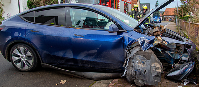Der Tesla wurde im Frontbereich völlig zerstört. Durch herumfliegende Trümmerteile wurde zudem ein auf einem Grundstück abgestellter Pkw beschädigt. Die Mauer des Grundstücks wurde ebenfalls in Mitleidenschaft gezogen. Der Sachschaden wird von der Polizei auf rund 40.000 Euro geschätzt.