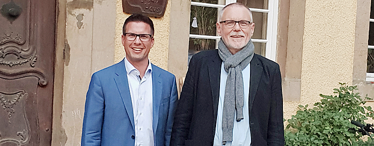 Swen Bastian mit Gerhard Merz bei der Lebensgemeinschaft e.V. Sassen am Standort Richthof. Foto: Matthias Weitzel