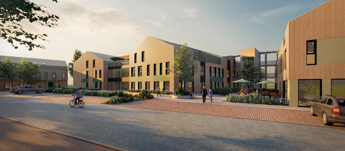 Im Erdgeschoss und im Obergeschoss der Bauanlage mit Wohlfühlcharakter werden vier Wohngruppen der stationären Pflege für jeweils 15 Bewohnerinnen und Bewohner einziehen. Zwischen den Wohngruppen befindet sich ein angelegter Innenhof sowie ein großflächiger Außenbereich. Dem Dachgeschoss werden Verwaltungsräume, eine Küche zur Essensaufbereitung, sechs Einheiten des betreuten Wohnens sowie eine lichtdurchflutete Tagespflegeeinrichtung mit einer großzügigen Dachterrasse zugeordnet. Die Tagespflege steht für bis zu 20 Gäste gleichzeitig zur Verfügung. Das betreute Wohnen mit weiteren 14 Einheiten aus modernen 2- und 3-Zimmer-Wohnungen bildet im Gebäuderiegel, neben dem Hauptgebäude, einen wesentlichen Teil des Versorgungskonzeptes. „Hier finden Menschen – vorzugsweise Senioren – Unterstützung, die je nach Lebenssituation unterschiedliche Formen der Hilfe benötigen bzw. nicht zwangsläufig auf einen umfangreichen Pflegebedarf angewiesen sind und gerne den Vorteil einer barrierefreien Wohnanlage nutzen möchten“, ergänzt Kerstin Pokrzewinski. Im Erdgeschoss des Nebengebäudes befinden sich außerdem die Räumlichkeiten der Bäckerei mit einem großzügigen Café und einer angrenzenden Außenterrasse sowie ein moderner Multifunktionsraum, der für gemeinschaftliche Feierlichkeiten oder für Vereinstreffen genutzt werden kann. In einem zusätzlichen Gebäudetrakt werden das Medizinische Versorgungszentrum sowie die Apotheke beheimatet.