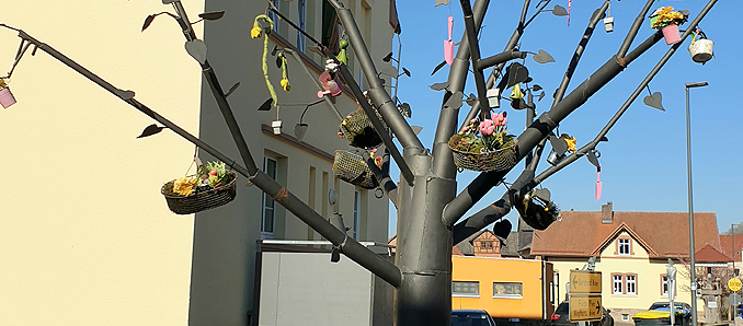 „Lebensthemenbaum“ zum Osterfest in Poppenhausen geschmückt