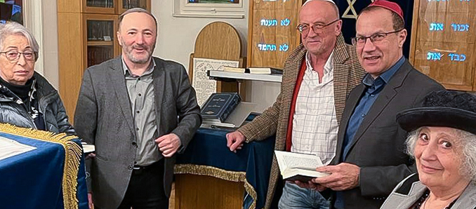 Der Fuldaer Bundestagsabgeordnete Jürgen Lenders (FDP) hat zusammen mit der Ehrenvorsitzenden der Freien Demokraten Fuldas, Sibylle Herbert, und den beiden Stadtverordneten Dr. Herbert Büttner und Dr. Sebastian Koch vergangene Woche die Jüdische Gemeinde Fulda besucht. Neben einer Besichtigung der Synagoge stand ein Austausch mit Vorbeter Roman Melamed und Vorstandsmitglied Bella Gusman auf der Agenda.