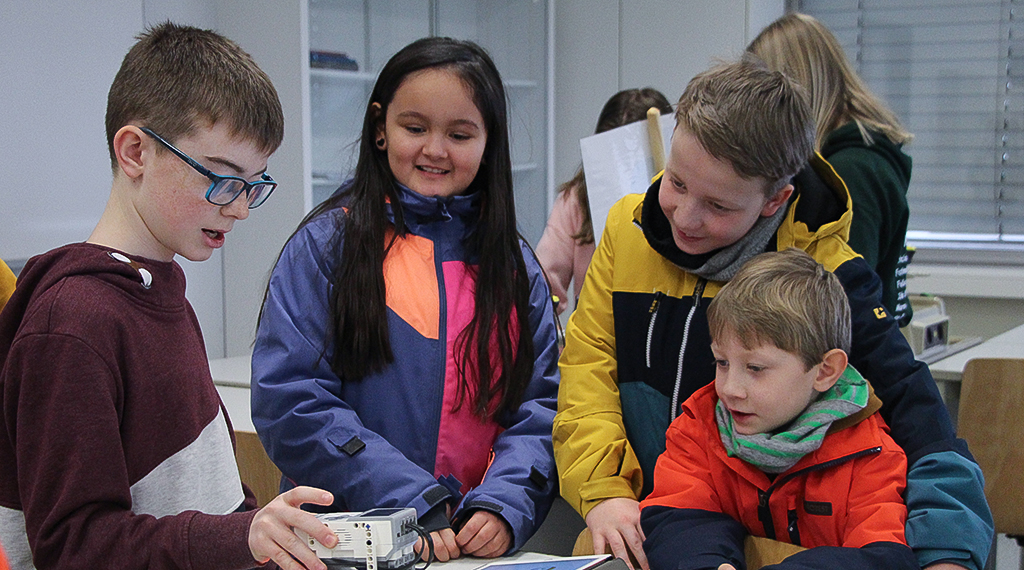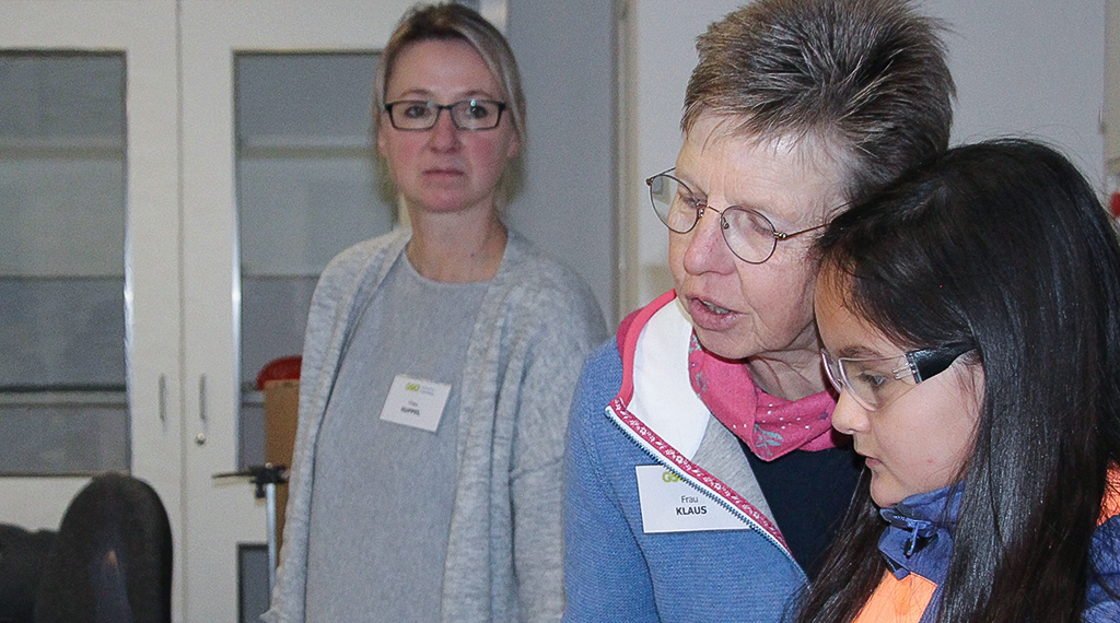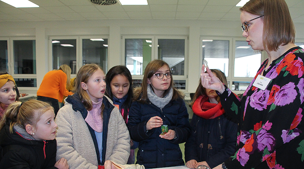 Während die Erwachsenen von den Schulleitungsmitgliedern durch das Schulgebäude geführt wurden und sich über die Schwerpunkte MINT, Gesundheit, Sport und Schach informieren konnten und auch den YouTube-Raum sowie die Schulbibliothek besichtigten, nahmen viele Viertklässler an Kinderführungen teil. An vielen Stationen konnten sie sich ausprobieren, mitmachen und sich austoben: im Vivarium der MSO konnten sie eine Vogelspinne und einen Leopardgecko streicheln, bei der Bio-Rallye wurden die menschlichen Organe erkundet und mikroskopiert, mit den Chemielehrerinnen Münzen „vergoldet“ und die Physiklehrer zeigten spannende Experimente. Auch die Lego-Roboter der Lego-Mindstorms-AG faszinierten viele Besucher.